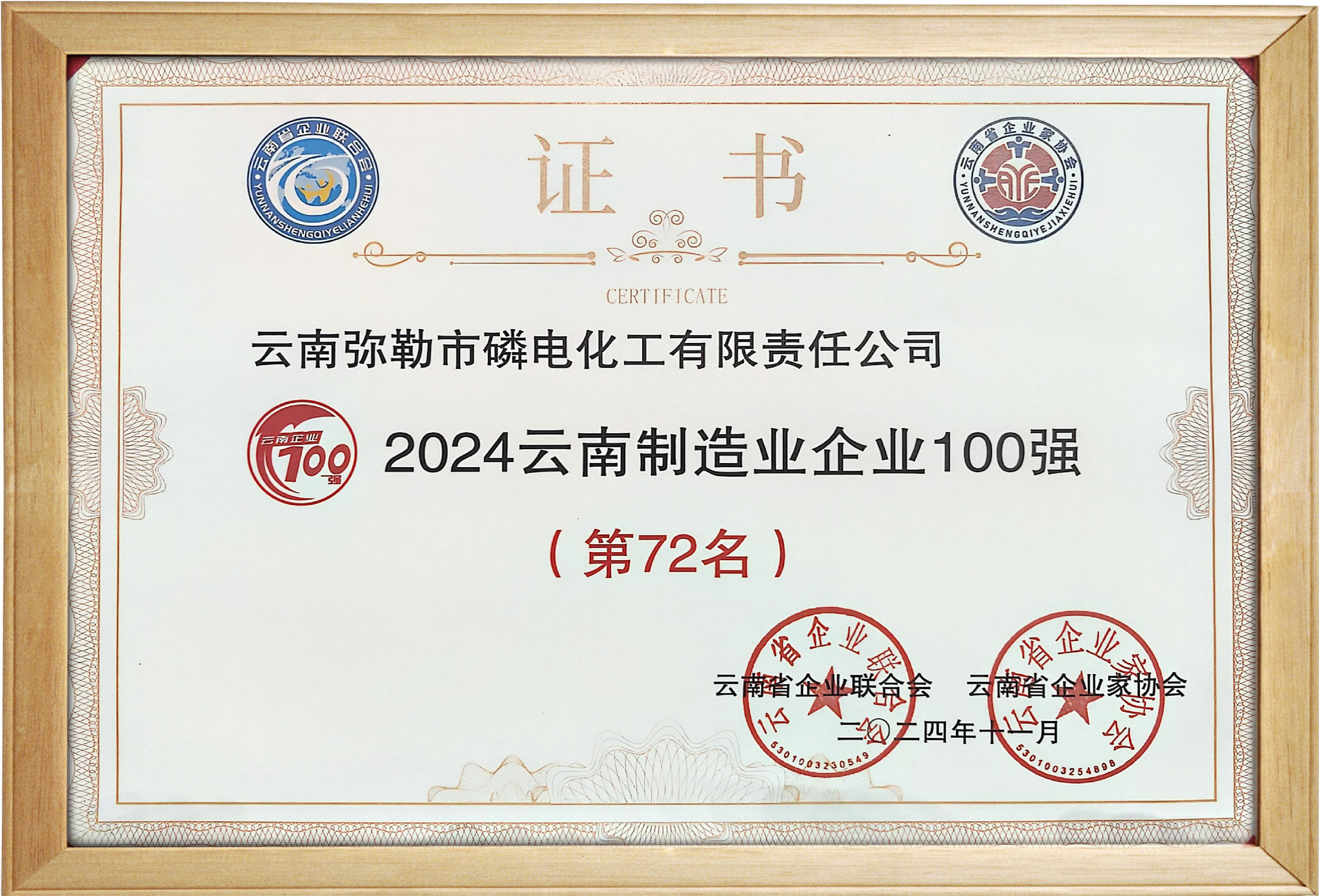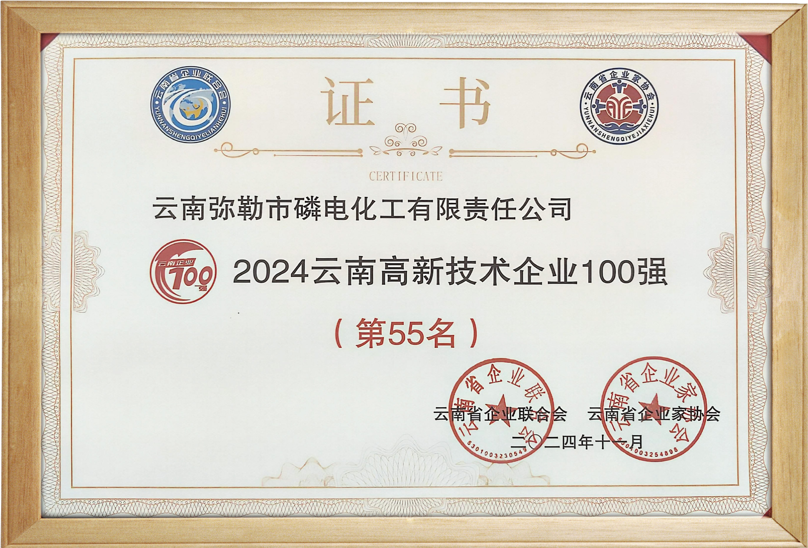憑借卓越的綜合實力和持續(xù)的創(chuàng)新實力,彌勒磷電繼2023年度入選“2023云南企業(yè)100強”、“2023年云南制造業(yè)企業(yè)100強”、“2023云南民營企業(yè)100強”和“2023云南高新技術(shù)企業(yè)100強”之后,再度成功入選“2024云南高新技術(shù)企業(yè)100強”(第55名)、“2024云南制造業(yè)企業(yè)100強”(第72名)。
